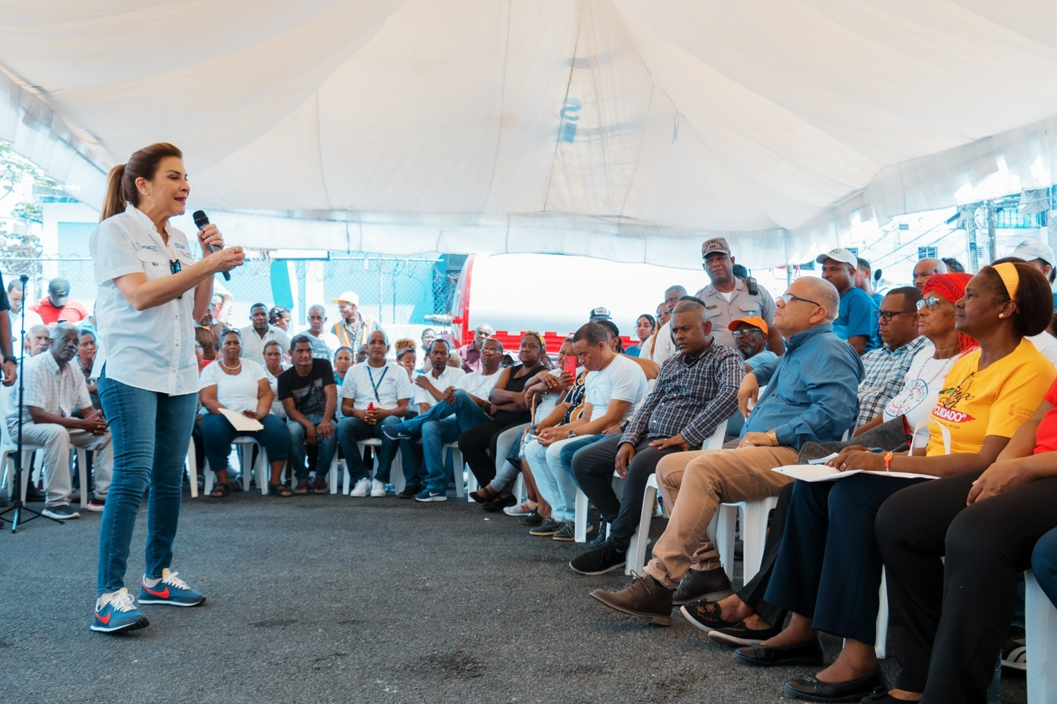 Acompañaron a la Alcaldesa, los directores de Mantenimiento y Obras Comunitarias, Christian Tejeda; de Infraestructura Urbana, Johan Santiago; Iván Gómez de Policía Municipal; de espacios Públicos José Anibal Sanz, de Servicios Sociales, Altagracia Suero.