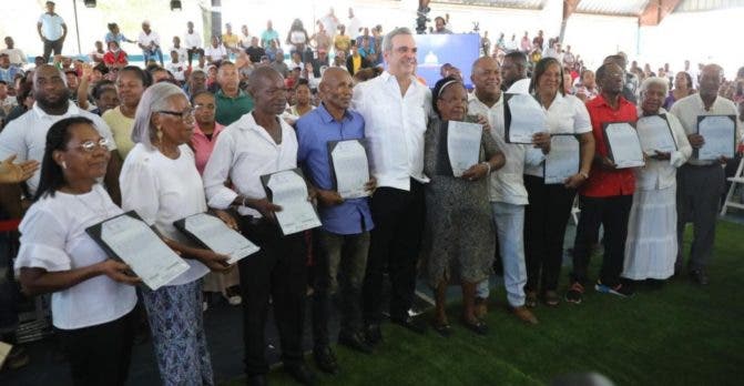 En el acto el presidente Abinader anunció a los residentes del centro de La Victoria que ocupan terrenos de la la iglesia Católica, que el pasado martes recibieron el permiso del Vaticano que permite entregarles sus títulos, tras un proceso que se prolongó por más de un año.